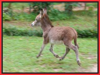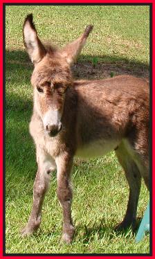 Henson's Meme's Mojave - one of our sweetest, tiniest, and adorable jacks ever! Named "Mojave" because he was born in the Florida desert! And because is awesome! Born: July 16, 2011 (Ready for the New Year) Color: Brown w/red highlights, Birth Height: 20.5" Conformation: Excellent; People-loving, playful baby boy donkey! Pedigree: Dam: BFF MeMe, Reg # 55998, 32", red Dam's Sire: Southern Horse Co's Sampson, deep grey with lots of red in geneology Dam's Dam: Henson's Molly, 32" dark grey dunn Dam's Disposition: Get-out-of-my-way-I'm-coming-through attitude. Sweet, just not very polite. Sire: Lawzyday Farm's Sancho Panza, Chocolate, 32", #23528 Sire: Laughlin's Cochese, Red Dam: LDF Violet, 32", Dark brown Grandsire: KDL Black Hawk, 32" Black w/cross Greatsire: River's Crest Blackberry, 32" Black Sire's Disposition: Sweet and helpful! The best daddy donkey in the whole wide world, according to his owners -- That would be Us! Sancho Panza is from a long line of proven quality, color, and originality: The Fireman, Sorrel; Grumpy; LCR Valintino 49, Sorrel (from the 1920s original imports) RC's Merlin, Black MeMe's foal is weaned and ready to travel to his new home! Offered as your lifelong pet, pair $1250 |