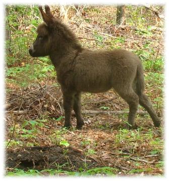 BFF Cowboy Bill Born: December 22, 2008 Birth Height: 19.50", Jack Color: Brown with very red highlights; gorgeous with a particularly wide cross This stocky and well built little jack will make someone an excellent breeding jack. Well-mannered and well-conformed in one tiny package! Disposition: A Lover! Why so affectionate you may ask? Read "The Secret" and you will know too! Outstanding Pedigree Dam: Southern Mtn Horse Co's, SMHC Christiana, 32.5", Grey-dun Dam's Sire: Libertyville Anthony, 31", Grey-dun Dam's Dam: Cedar Springs Sabina, 32", Grey-dun Great Sire: Lazy C Ranch Valintino 33, Grey-dun, 32" Dam's Disposition: Sweet, smart, and very concerned about being scratched! Sire: Lawzyday Farm's Sancho Panza, Chocolate, 32" Sire's Sire: Laughlin's Cochese, Red Sire's Dam: LDF Violet , 32", Dark brown Grandsire: KDL Black Hawk, 32" Black w/cross Greatsire: River's Crest Blackberry, 32" Black (Pedigree includes LCR's Valentino 58) Sire's Disposition: Sweet and helpful! The best daddy donkey in the world, according to his owners -- Us! Sancho Panza is from a long line of proven quality, color, and originality: The Fireman, Sorrel Grumpy Lazy C Ranch Valentino 49, Sorrel RC's Merlin, Black Congratulations to his proud new owners, The Gouker Family, Georgia |