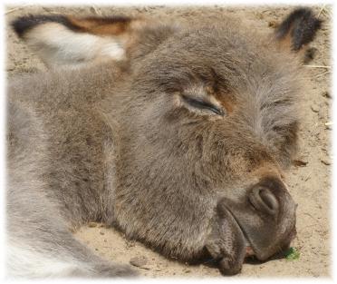 BFF Just-a-Tad Born: March 19, 2009 (Thanks Alexis) Birth Height: 17.50" (Oh my, he is little!) Color: Grey dun with dark highlights. So little, easy to pick up like a baby! This tiny and well conformed jack will likely produce very tiny babies in someone's breeding program. Disposition: Very friendly - a people donkey! Why so affectionate you may ask? Read "The Secret" and you will know too! Pedigree Dam: Carmen of the South Seas #55263, 30", Spotted Dam's Sire: MS Avante, 31", Spotted Dam's Dam: MS Valuable Treasure, 32", Grey-dun Dam's Disposition: Sweet, smart, and very concerned about being scratched! Sire: Lawzyday Farm's Sancho Panza, Chocolate, 32" Sire's Sire: Laughlin's Cochese, Red Sire's Dam: LDF Violet, 32", Dark brown Grandsire: KDL Black Hawk, 32" Black w/cross Greatsire: River's Crest Blackberry, 32" Black (Pedigree includes LCR's Valentino 58) Sire's Disposition: Sweet and helpful! The best daddy donkey in the world, according to his owners -- Us! Sancho Panza is from a long line of proven quality, color, and originality: The Fireman, Sorrel Grumpy Lazy C Ranch Valentino 49, Sorrel RC's Merlin, Black Tad will be ready to wean in mid July. Offered as a breeding quality jack (once he wakes up of course). ASK about our "Best Friends" price for two! Congratulations to his proud new owners, The Guinn Family |